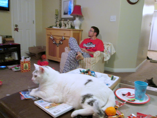 A picture from my new little camera that I got for myself on an amazing deal and had the boys wrap for me. It's so tiny I can keep it in my purse for anytime use, I'm excited. The picture is proof that Jeremy was around for a while on Christmas day. We were so sad to kiss him goodbye at 8:30, because he had to work a 9 to 9. People get hurt and sick every day, even Christmas. I'm glad there are people like Jeremy willing to make the sacrifice to be there and take care of them. But we missed him terribly.